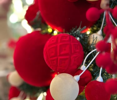 As Bolas de Natal Aveludadas trazem uma textura luxuosa e um toque de suavidade incomparável para a sua decoração. Seu acabamento fosco e profundo absorve a luz de forma delicada, transformando sua árvore em um cenário de elegância serena e puro aconchego.